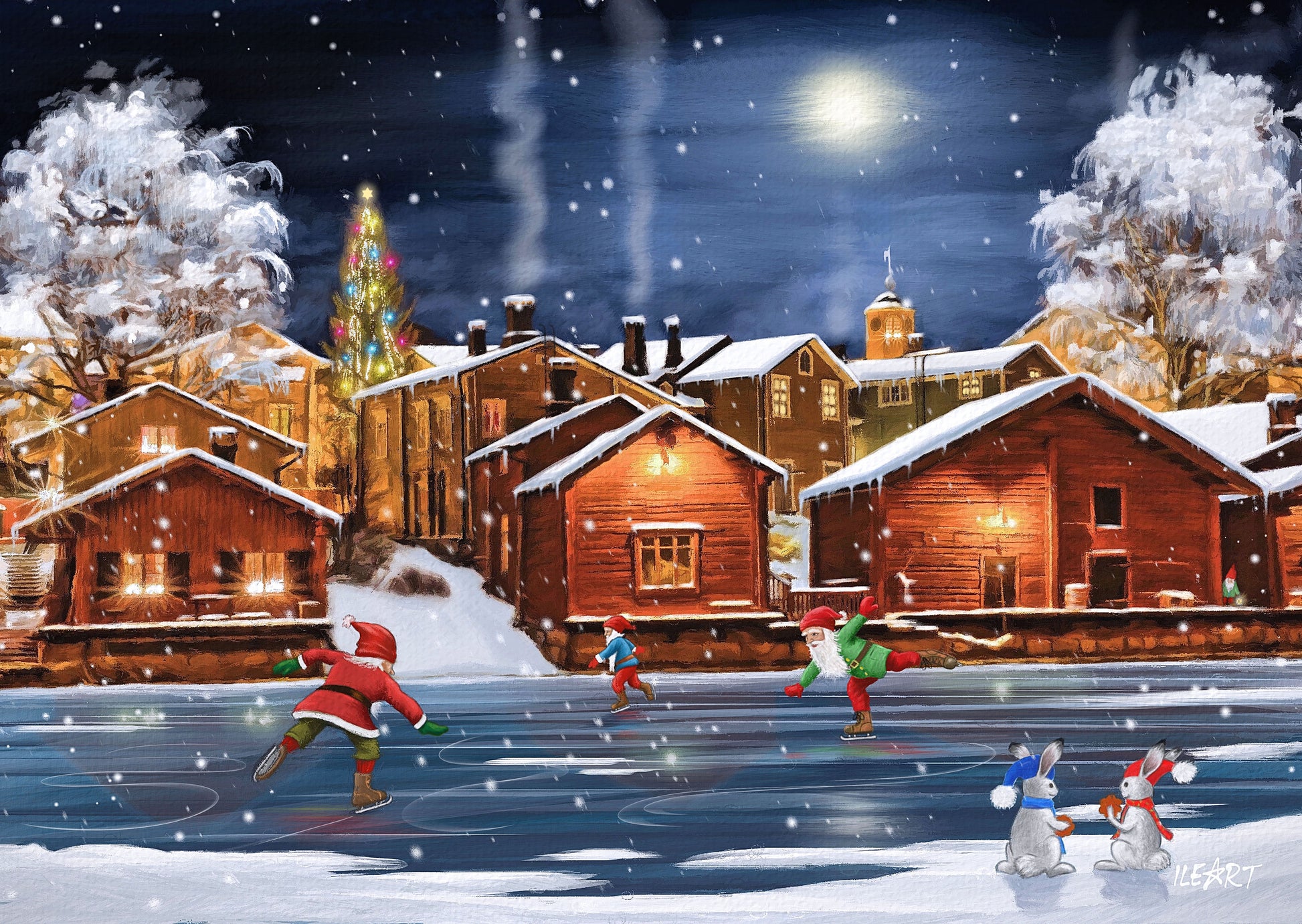 Tunnelmallinen joulukortti Porvoon talvisesta maisemasta.